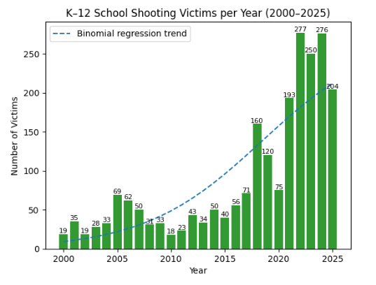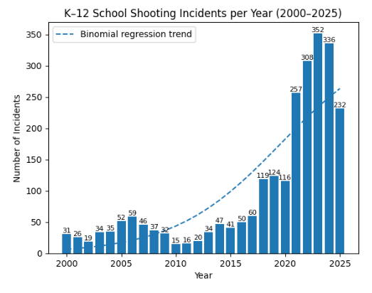 The end of 2025 brings a final count of 232 shootings at k-12 schools with 204 victims who were killed or wounded.